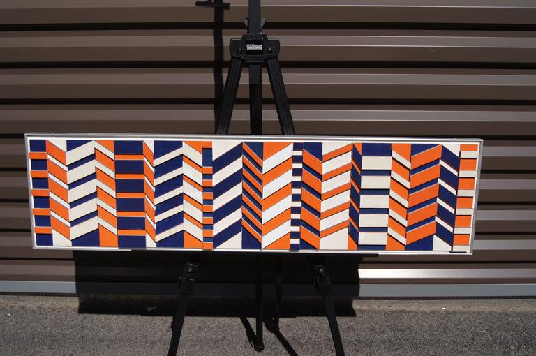 This abstract assemblage is the work of Norman Ives (1923–1978). An artist and graphic designer based in New Haven, he was also a publisher of Fine portfolios of many of the century’s top modernist artists. Placed horizontally and diagonally, blocks of wood painted orange, blue, white, and cream create a rhythmic but nonrepeating sequence. The assemblage is set within an aluminium frame and inscribed on back: To Bill, Dec. 7, 1975, Norman Ives.