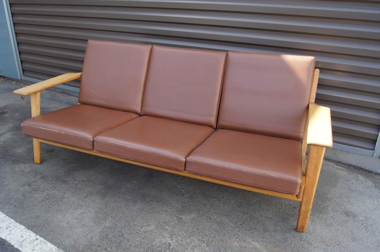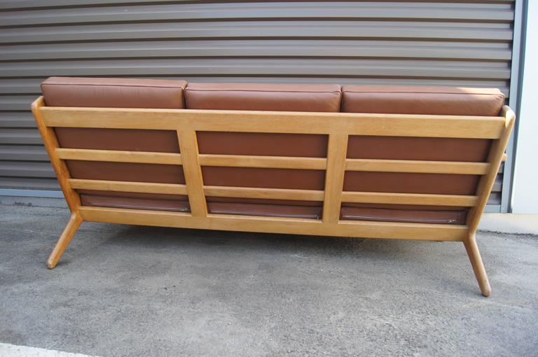 Brown Leather and Oak Three-Seat Sofa, Model GE 290